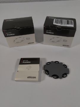 Two boxes of ten Oticon wax protection sets, Prowax Minifit (6 per set).