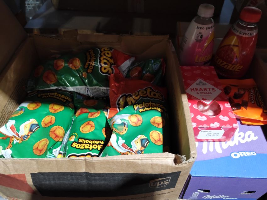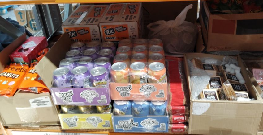 Assorted out-of-date food and confectionery products and related. (one shelf)