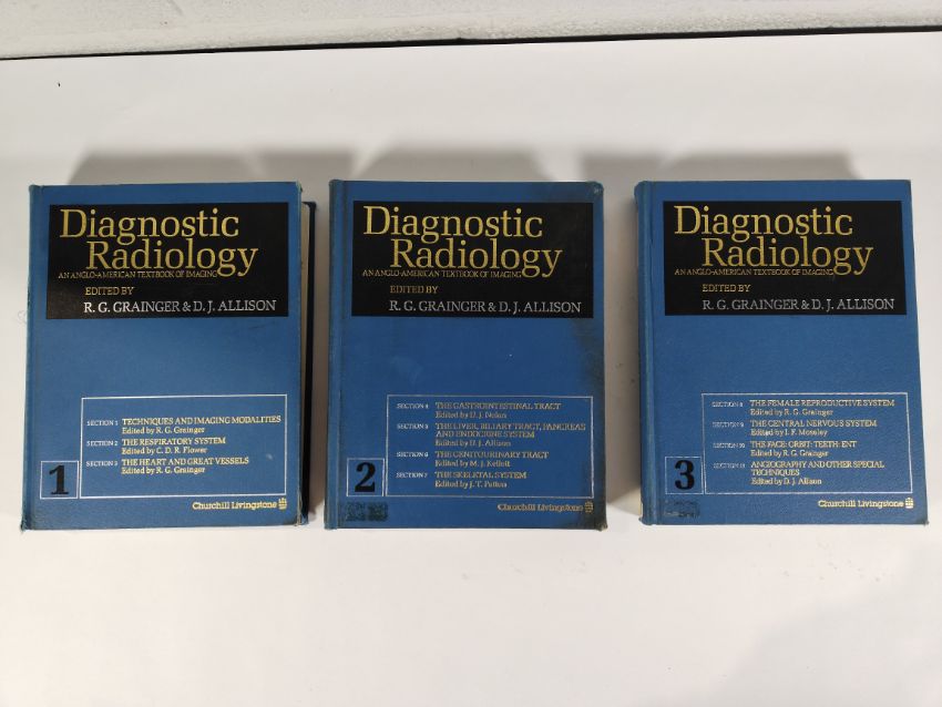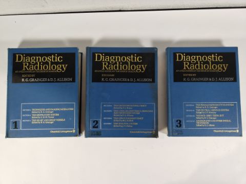 Diagnostic Radiology: An Anglo-American Textbook of Imaging by R. G. Grainer & D. J. Allison - Volumes 1-3 - Churchill Livingstone (hardcover). Pre-owned condition with some damage to the hardcover and slight damage to some pages.