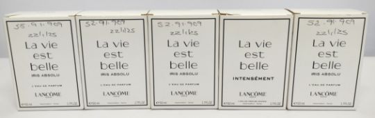 Five nearly new Lancome eau de parfum 50ml testers and related, boxed (please note: bottles may have been very slightly used).