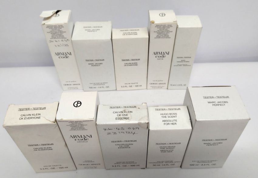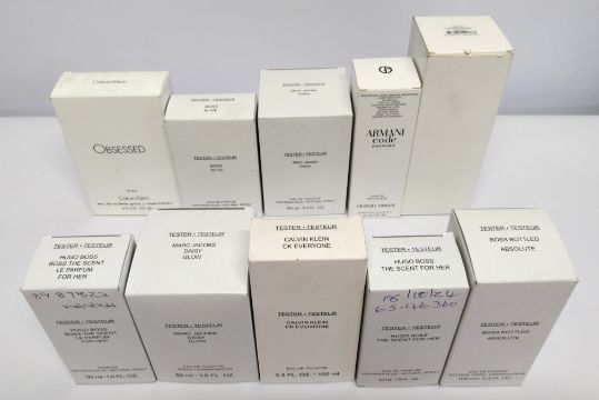 Thirty nearly new perfumes/testers and related to include Boss, Marc Jacobs, Sauvage, Armani, CK and more, boxed (please note: bottles may have been very slightly used/packaging may have damage).