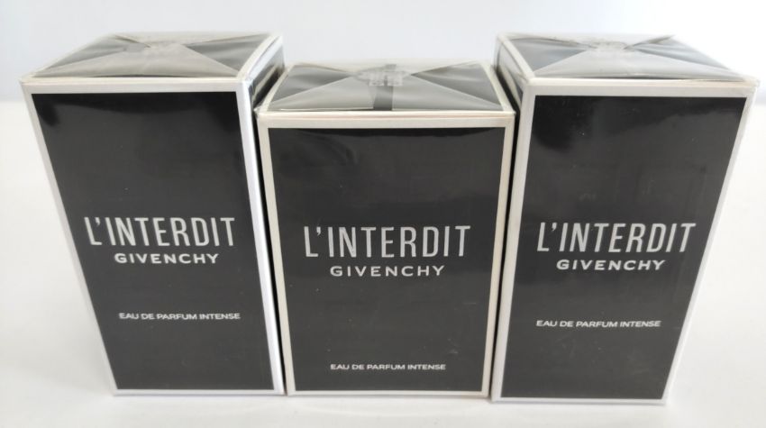 Three as new Givenchy L'interdit related eau de parfum intense - two 50ml and one 35ml, sealed boxes.