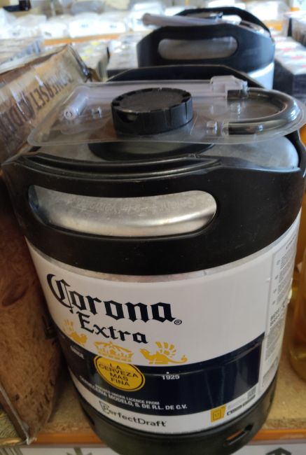A quantity of assorted beers/ales/cider to include 6L kegs Corona/Stella, Broadoak Pear/Chilli cider bag, Guinness Nitrosurge and related (some nearing BB date) (one shelf).