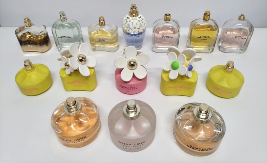 Thirty Marc Jacobs perfumes/testers and related (please note: bottles may have been used/packaging may have damage/missing spray tops or lids).