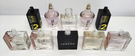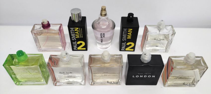 Forty Paul Smith perfumes/testers and related (please note: bottles may have been used/packaging may have damage/missing spray tops or lids).