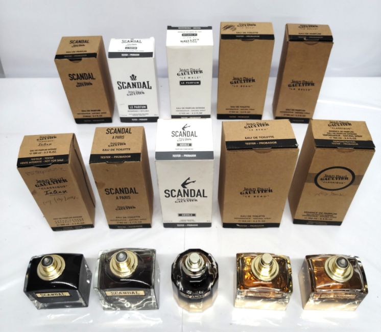 Thirty Five Jean Paul Gaultier perfumes/testers and related (please note: bottles may have been used/packaging may have damage/missing spray tops or lids).