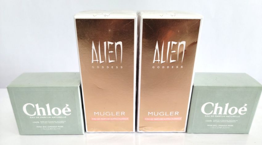 Four as new Mugler and Chloe eau de parfum fragrances. - two Mugler 90ml and two Chloe 30ml.