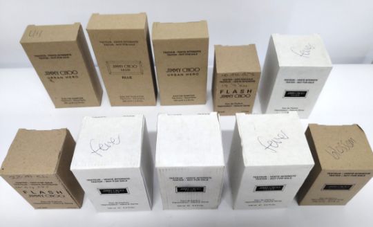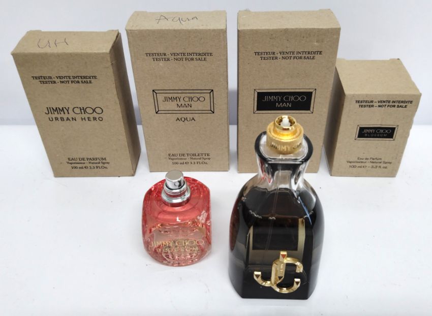 Thirty Five Jimmy Choo perfumes/testers and related (please note: bottles may have been used/packaging may have damage/missing spray tops or lids).