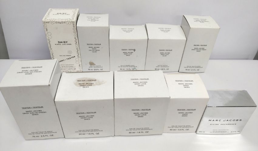 Thirty Marc Jacobs perfumes/testers and related, boxed (please note: bottles may have been used/packaging may have damage/missing spray tops or lids).
