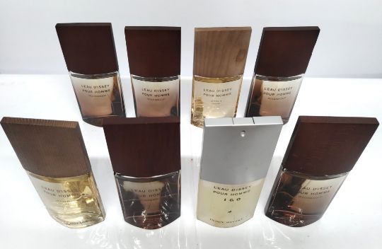 Thirty Issey Miyake perfumes/testers and related (please note: bottles may have been used/packaging may have damage/missing spray tops or lids).