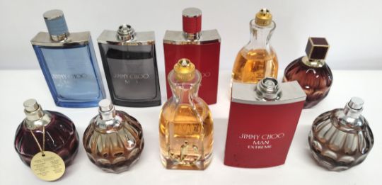 Thirty Jimmy Choo perfumes/testers and related (please note: bottles may have been used/packaging may have damage/missing spray tops or lids).