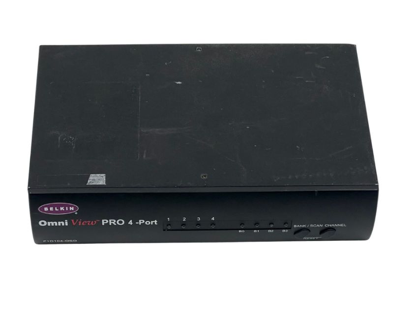 Pre-owned Belkin OmniView Pro F1D104-OSD 4-Port KVM Switch With OSD (Sold as seen).