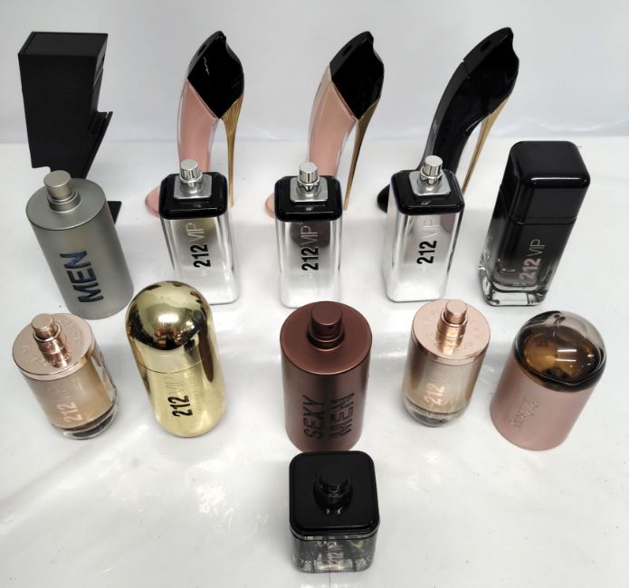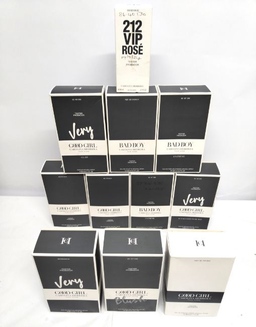 Forty eight Carolina Herrera perfumes/testers and related (please note: bottles may have been used/packaging may have damage/missing spray tops or lids).