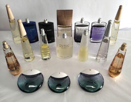 Fifty Issey Miyake perfumes/testers and related (please note: bottles may have been used/packaging may have damage/missing spray tops or lids).