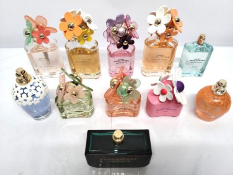 Thirty Marc Jacobs perfumes/testers and related (please note: bottles may have been used/packaging may have damage/missing spray tops or lids).