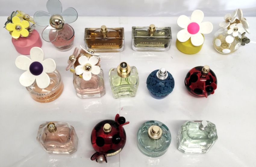Forty Marc Jacobs perfumes/testers and related (please note: bottles may have been used/packaging may have damage/missing spray tops or lids).