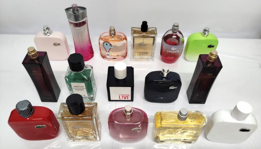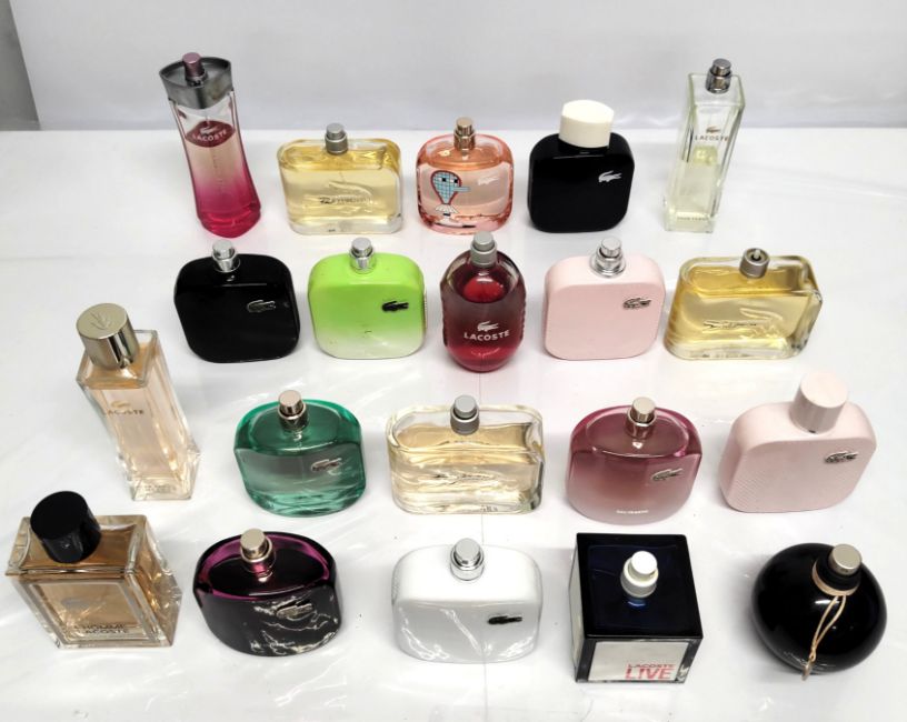 Forty Lacoste perfumes/testers and related (Please note: bottles may have been used/packaging may have damage/missing spray tops or lids).