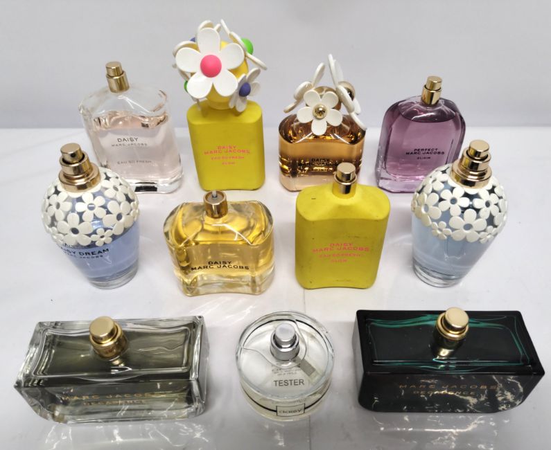 Twenty Eight Marc Jacobs perfumes/testers and related (please note: bottles may have been used/packaging may have damage/missing spray tops or lids).
