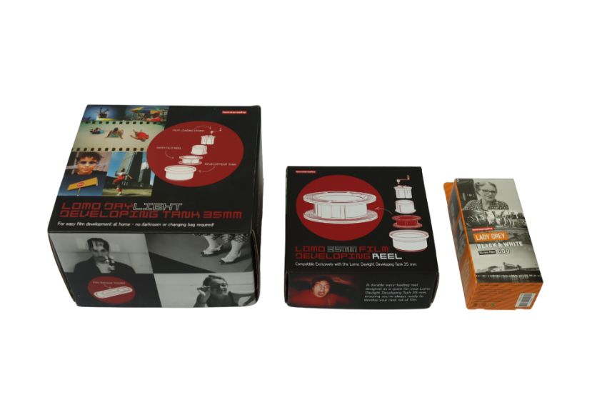 As new Lomography Lomo Daylight Developing Tank 35mm, as new Lomography Lomo Daylight Development Tank 35mm Film Reel and Lomography Lady Grey B&W 400 ISO Film (3 pack) (EXP: 01/2026).