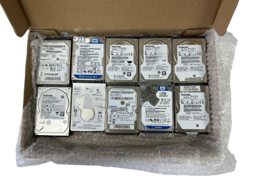 Twenty pre-owned 2.5" HDD's: 8 x 1TB , 8 x 750GB, 4 x 640GB (Data wiped & tested).