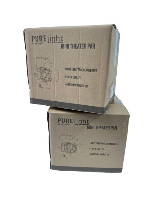 Two as new Lightmaxx PureLight Mini Theater Par 150W COB LED Spotlights (P/N: LIG0016694-00).