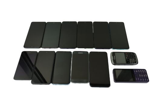 Assorted pre-owned phones including Samsung, OnePlus, Huawei (Account unlocked) (Sold as is).