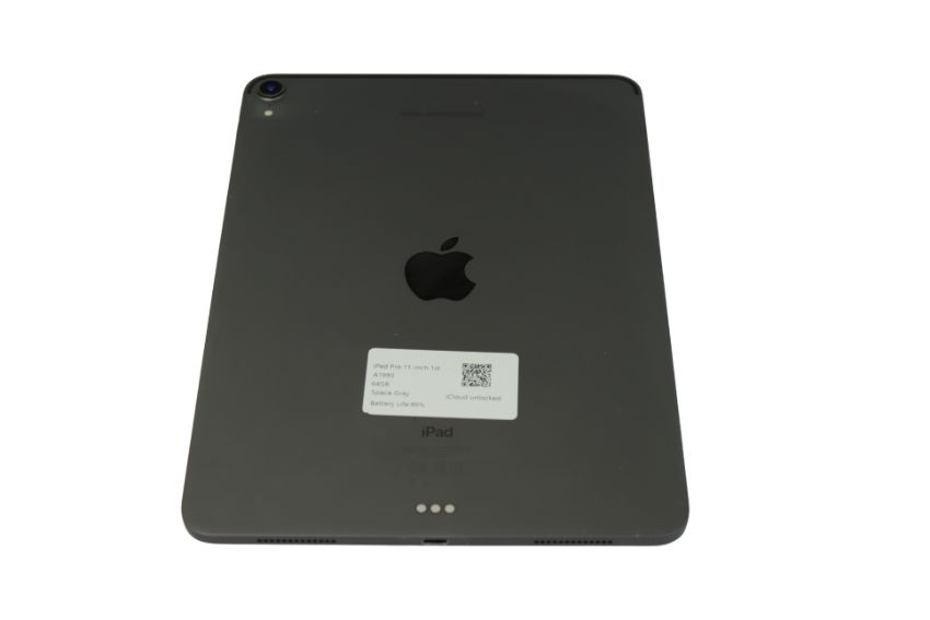 Pre-owned iPad Pro 11-inch (1st Gen/A1980) 64GB in Space Grey (iCloud unlocked) (Scratches to screen glass, inscription to rear casing) (S/N: DMPYNET7KD6J).