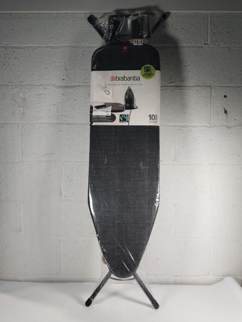 An as new Brabantia Ironing Board B, 124 x 38 cm with steam iron rest, denim black.