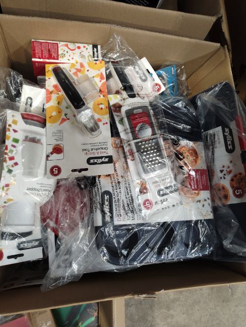 Five boxes of as new kitchenware's to include brands Cole and Mason, Swissmar and Zyliss.