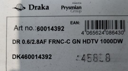 Eight Prysmian DR 0.6/2.8AF FRNC-C GN HDTV 1000DW green cable - 1000m per reel (8000 meters total).