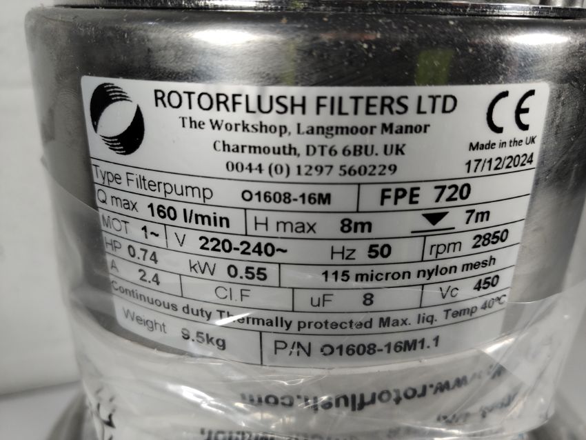 A Rotorflush self cleaning filter submersible pump, H.P - 0.74, Qmax - 160 l/min, with maintenance use manual (P/N O1608-16M1.1).