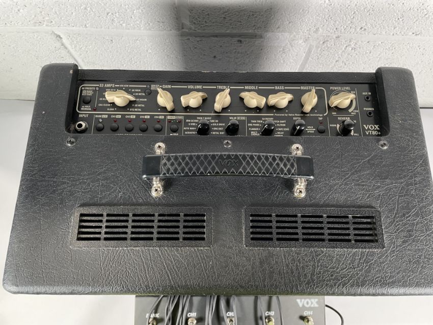 A pre-owned Vox Valvetronix VT80+ combo amp with a VFS5 footswitch (NO leads).