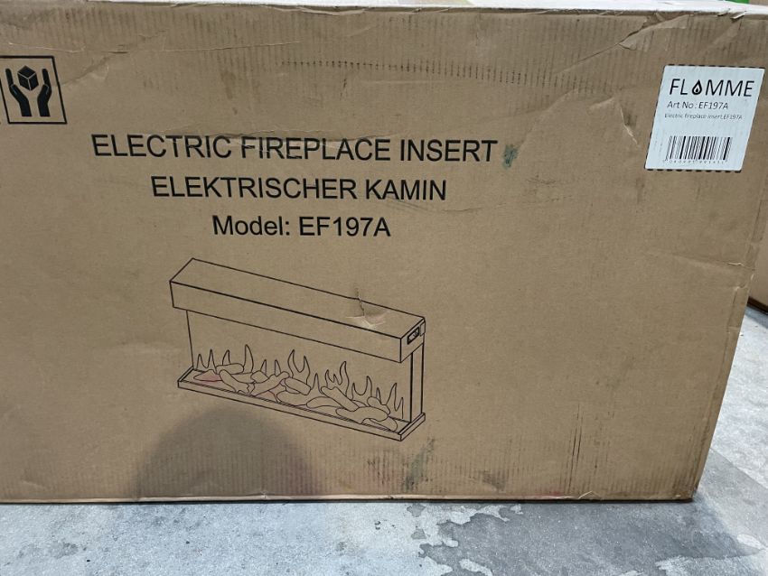 A boxed as new Flamme EF197A Electric Fireplace Insert (wall mount).