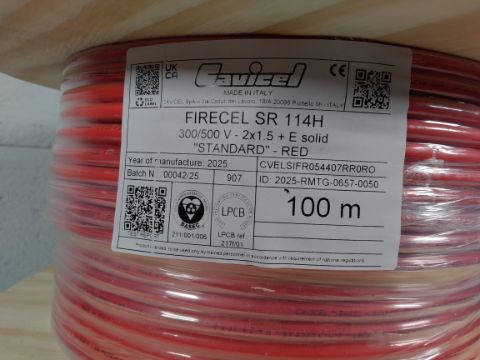 Two as new Cavicel Fire Alarm Cables 100m each Firecell SR 114H.