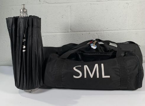 Two pre-owned collapsible lanterns to include Prolycht and SML (Lamps not included) and a Godox UB-105W umbrella.