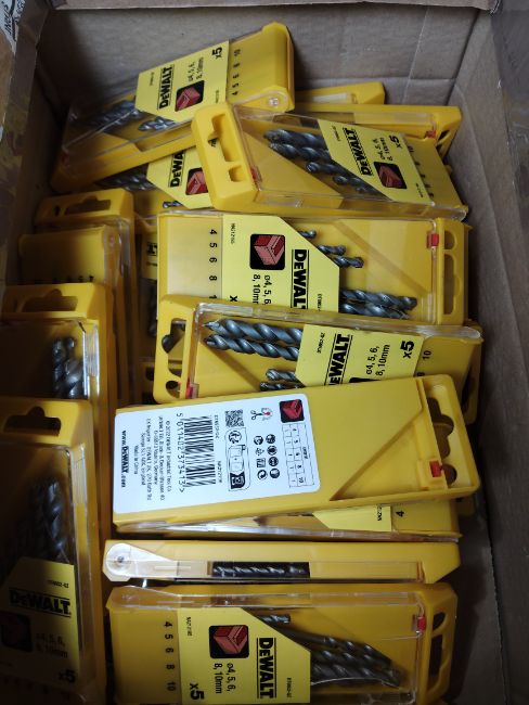 Twenty boxes of DeWalt straight shank masonry 5 piece drill bits sets (please note: some items have damage to plastic casing).