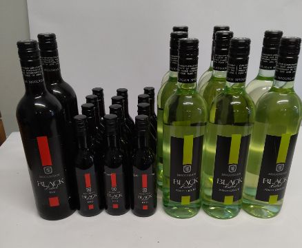Nine McGuigan Black Label Pinot Grigio 2024 white wine 9 x 750ml, two McGuigan Black label Red 2022 red wine 2 x 750ml and twelve McGuigan Black Label Red 2022 red wine 12 x 187ml.