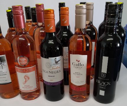 Twenty six assorted wines to include Barefoot Pink, Muscato 750ml, Isla Negro merlot 750ml.
