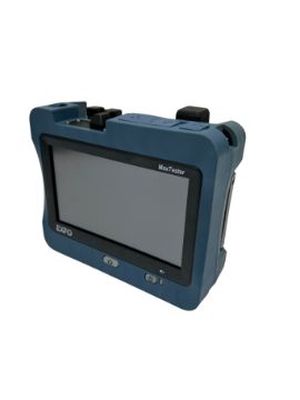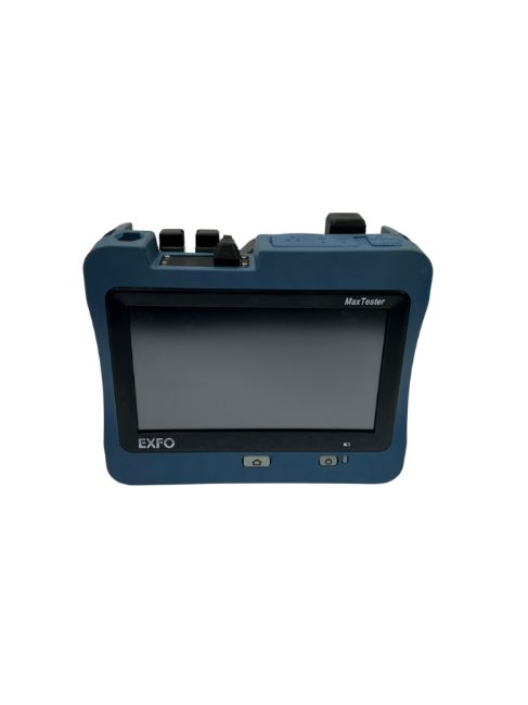 Pair of pre-owned EXFO MaxTester 940 OLTS Fiber Optical Loss Testers (P/N: MAX-940 iCert-Q1-E1-E1) (Damage to rear casing of one unit. PSU Included) (Powers on, sold as is).