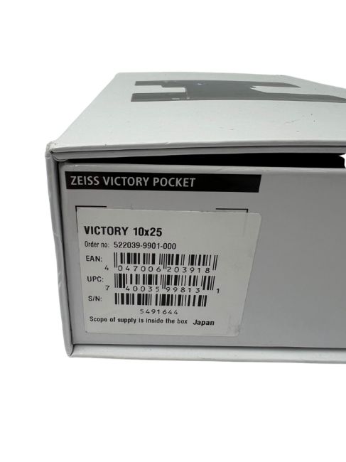 As new Zeiss Victory Pocket 10x25 Compact Binoculars (EAN: 4047006203918) (Box sealed, damage to box).