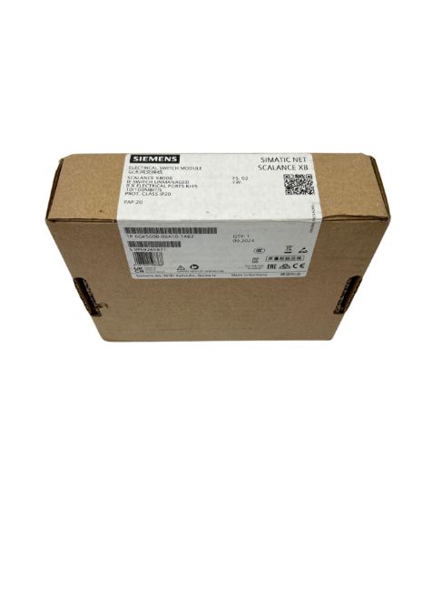 As new Siemens SCALANCE XB008 Unmanaged Industrial Ethernet Switch (P/N: 6GK5008-0BA10-1AB2).