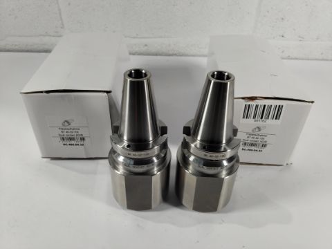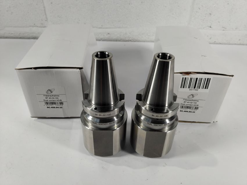 Two Weldon BT 40-32-100 milling cutter holders, dual contact AD/B, box opened (DC.406.04.32).