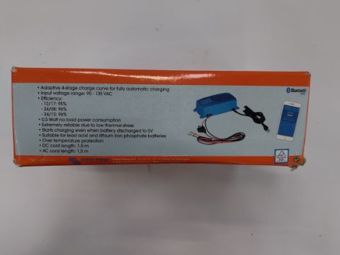 Ten as new Victron Energy Blue Smart IP67 battery chargers, Nema 5-15. 12 volt 17amp. UK adapter required.
