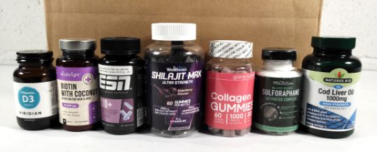 A quantity of assorted multi-vitamins and supplements to include sulforaphane, shilajit max, magnesium glycinate, collagen and black maca in date with various expiries (approximately 50 items).