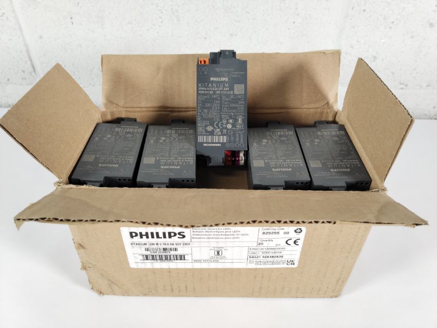 Twenty Philips Xitanium 20W/m 0.15-0.5A 52V 230V 20W LED drivers. Box opened (108380836).