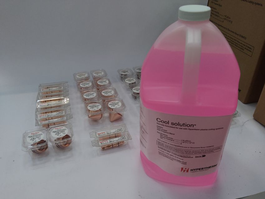 As new selection of Hypertherm components and four containers of cool solution, 420231 420233 420234 420237 420242 420249 420252 420255.