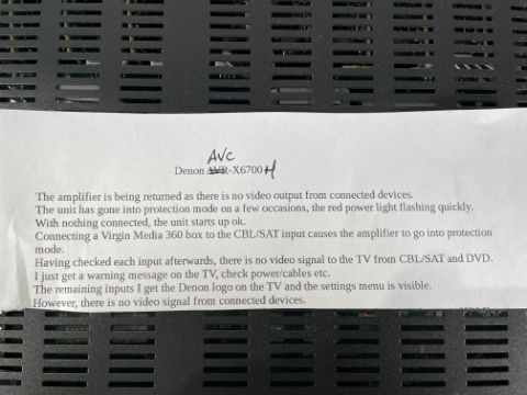 A pre-owned Denon AVC-X6700H Integrated network AV Amplifier (needs repair, see description in image, unit only).