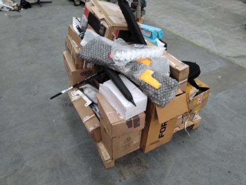 A pallet of assorted sports and related goods.