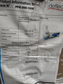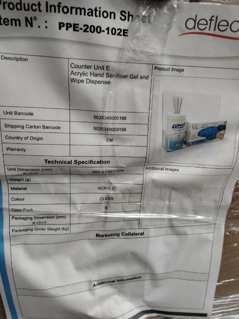 A pallet containing as new acrylic counter top safety stations (PPE-200-102E).