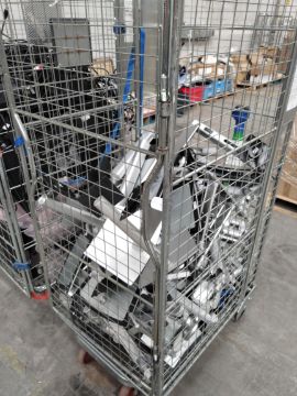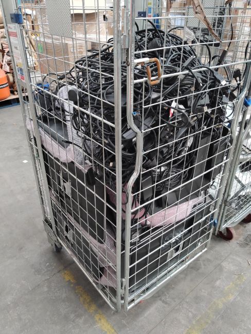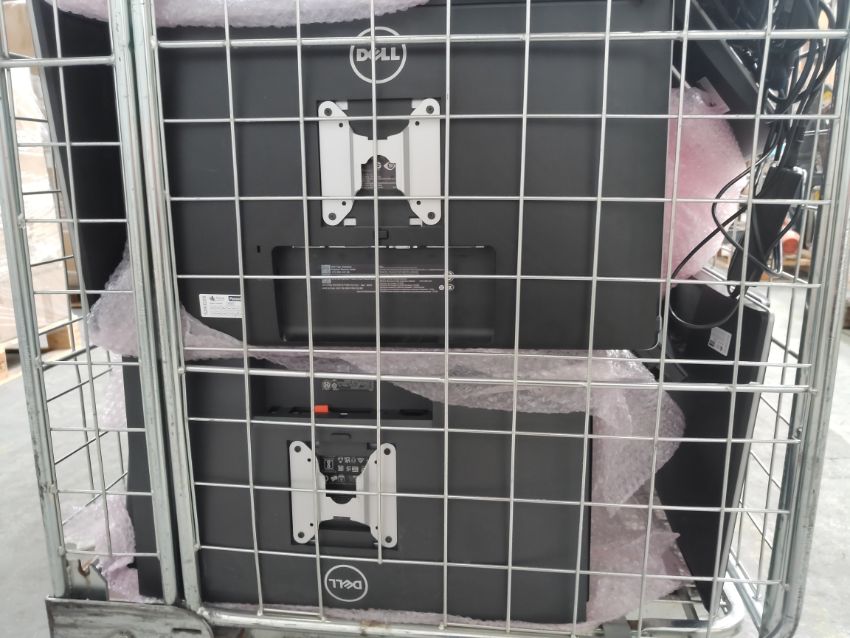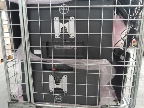 Approximately thirty pre-owned Dell computer monitors, (untested, cages not included). With monitor stands and power cables cannot guarantee quantity and compatibility.
